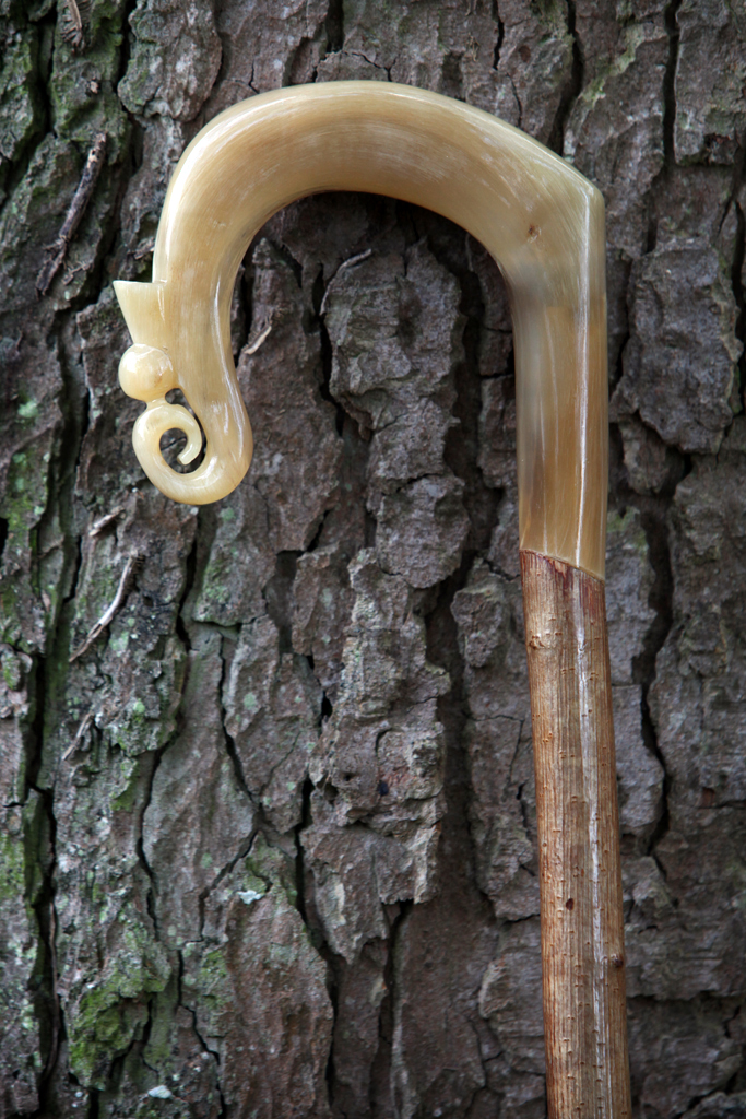 IMG_8018 Published December 13, 2011 at 683 × 1024 in Sticks for sale as of December 13th 2011 ← Previous Next → Carved Rams horn crook on hazel shank -£120